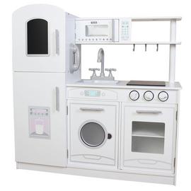 Packed with fun features such as a sink an oven with shelf and a washing machine with opening doors and clicking dials this great play kitchen is the perfect way to get children engaged with everyday tasks from a young age. Argosie has thousands of fantastic products for you to choose from across thirteen online categories. Play-Kitchen-for-Kids with 18 Pcs Toy Food Cookware Accessories Playset Wooden Chef Pretend Play Set for Toddlers with Real Lights Sounds 47 out of.