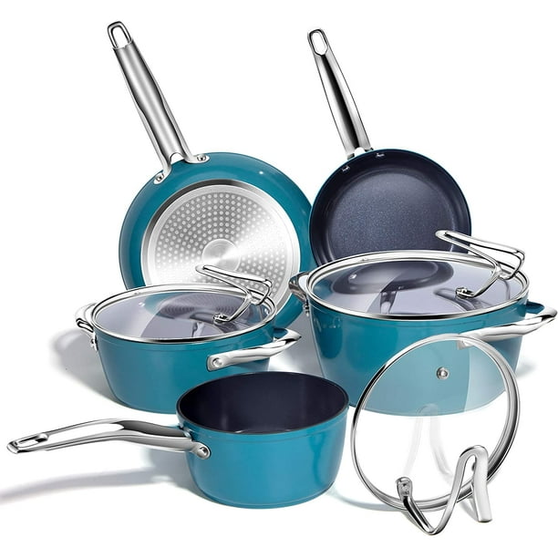 Redmond Nonstick Cookware Set 8 Piece Ceramic Aluminum Pans And Pots Set With Glass Lid And Stay Cool Handle For Stovetops Induction Cooktops Dishwasher Oven Safe Turquoise Blue Cs004 Walmart Com Walmart Com
