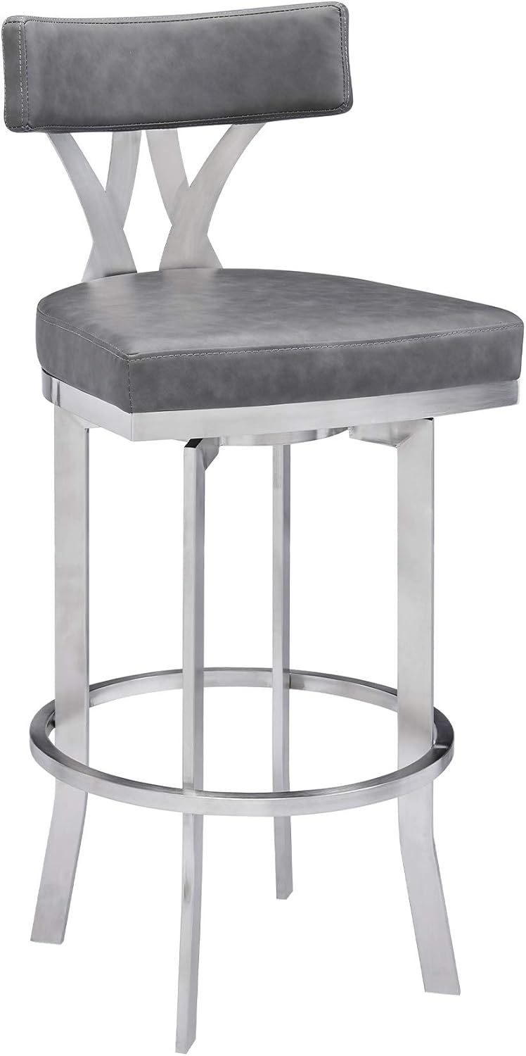 Amazon Com Armen Living Natalie Faux Leather Swivel Armless Kitchen Bar Stool 26 Counter Height Vintage Gray Brushed Stainless Steel Furniture Decor