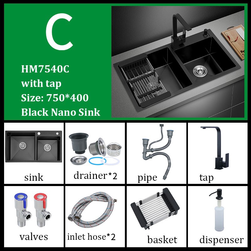 680x450mm Nano Stainless Steel Kitchen Black Sink Handmade Baseus Lazada Singapore