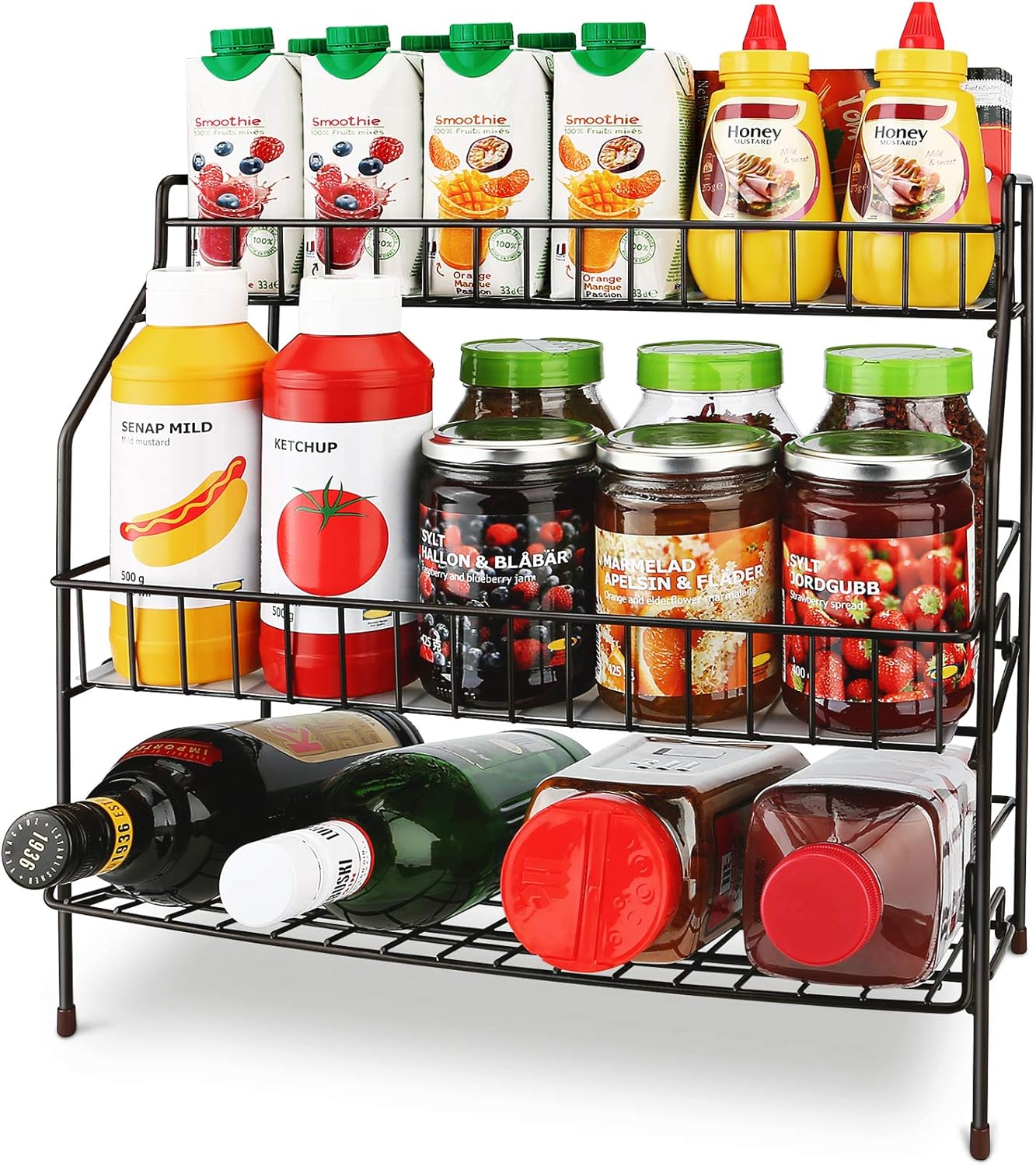 Amazon Com Smart Design 3 Tier Spice Rack Shelf Organizer Steel Metal Wire Rust Resistant Cupboard Jars Can Cabinet Pantry Storage Organization Kitchen 10 25 X 4 25 Inch Black Home Improvement