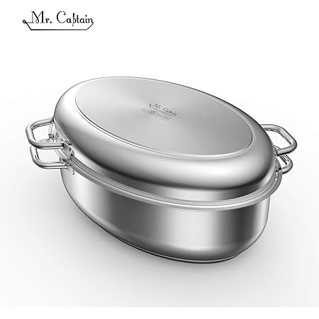 Amazon Com Mr Captain Roasting Pan With Rack And Lid 8 5 Quart 18 10 Stainless Steel Multi Use Oval Roaster Induction Compatible Dishwasher Safe Oven Safe Turkey Roaster 15 Inch Kitchen Dining